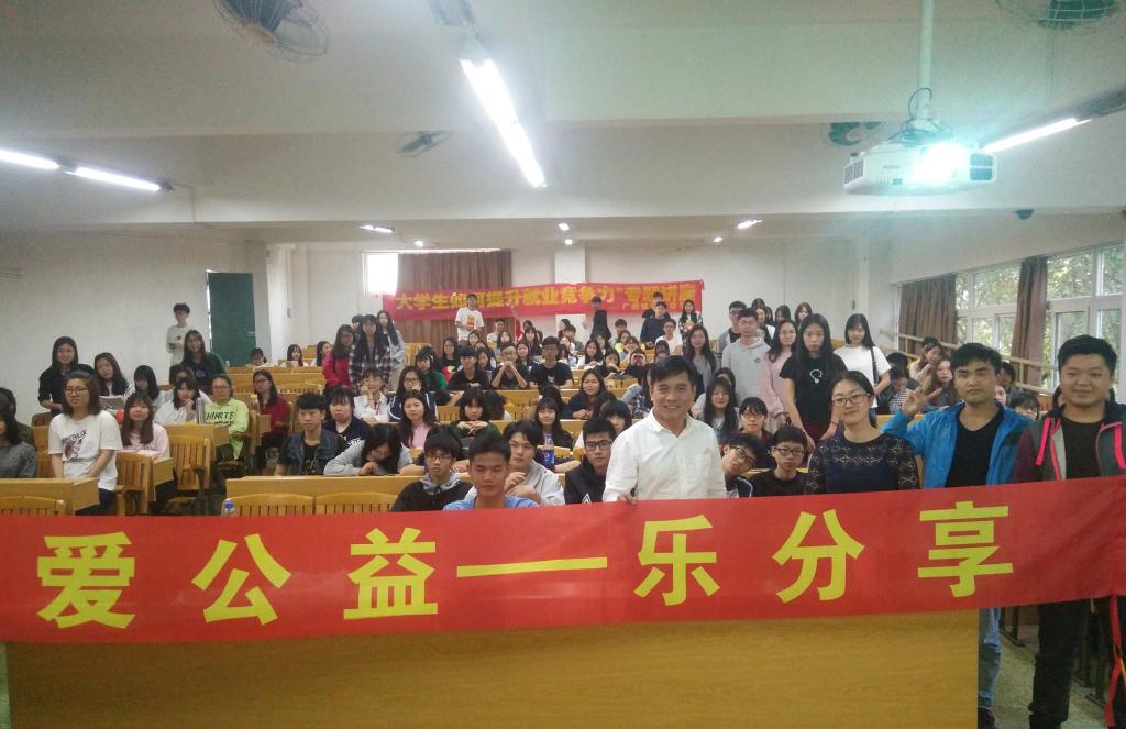 周总围绕就业前景、就业OR创业、就业首选、如何提升自己的就业竞争力、建立个人标签和找到自己的位置、大学生创业几个阶段等方面进行了讲解。周总凭借他丰富的人生阅历给广大师生们呈现了积极、健康的人生态度以及敢于挑战、突破人生局限的创新精神,他的个人魅力深深地折服了在场的每一位师生。