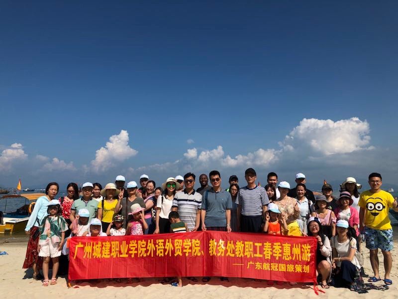蓝天、白云、碧海,5月26日至27日,在紧张工作之余,外语外贸学院、教务处组织全体教职工前往旅游胜地-惠州巽寮湾旅游度假区开展2018年春季旅游活动,学校总会计师苗红卫、学院院长王运祥、教务处处长鄢维峰、学院管理干部和教职工一同前往。
