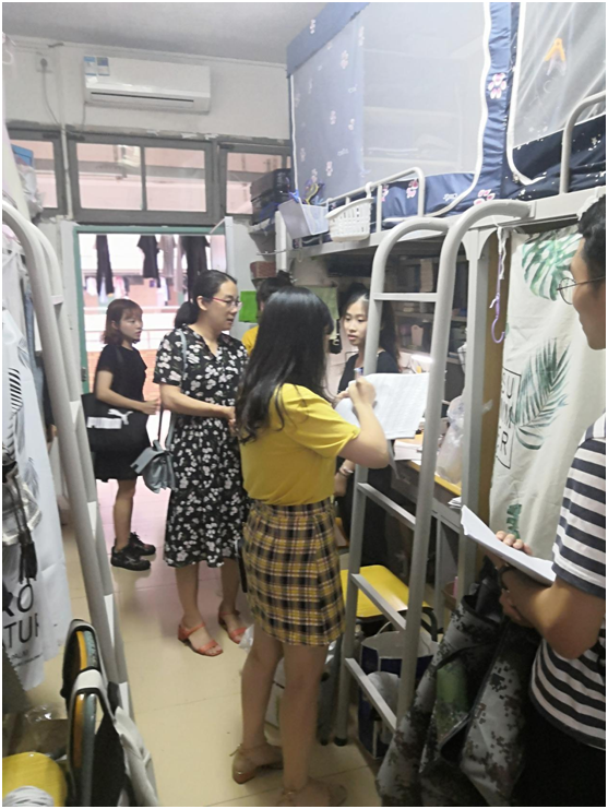 为积极响应省教育厅涉校安全隐患排查整治专项行动要求,保持高度警觉,强化使命担当, 9月16日,外语外贸学院副院长刘榕敏率全体辅导员对学生社区各类涉校安全隐患进行全面深入排查。