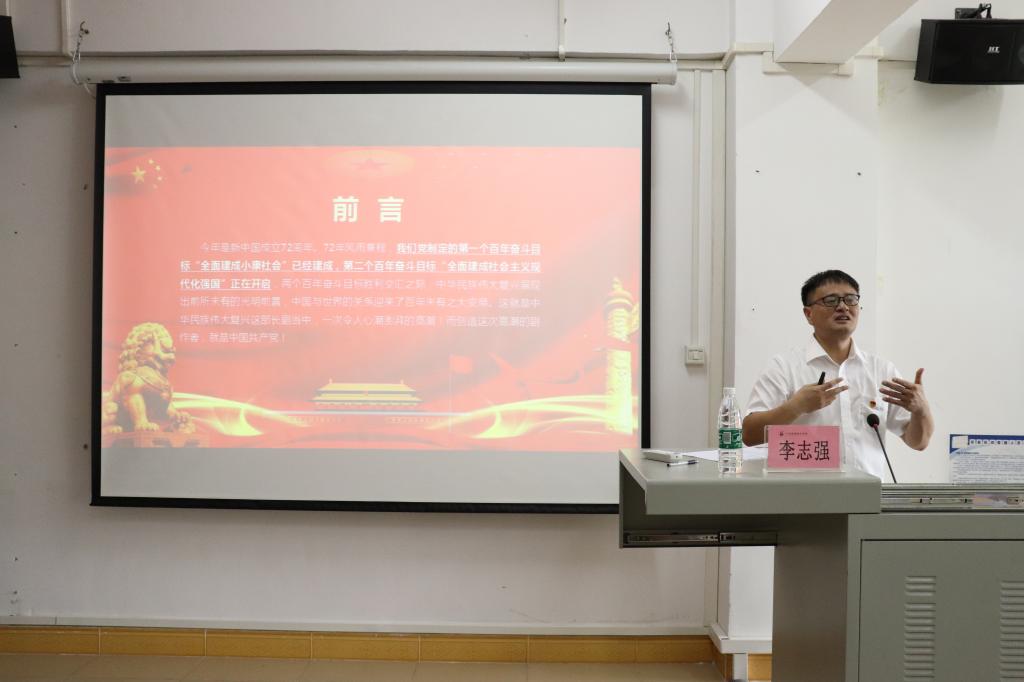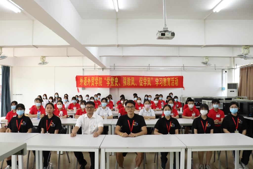 7月3日上午,在热烈庆祝中国共产党成立100周年之际,为加强大学生思想政治教育,深入党史学习教育,外语外贸学院党总支书记、院长李志强在建工机电楼302以《百年大党何以风华正茂》为题,结合习近平总书记在庆祝中国共产党成立100周年庆祝大会上的讲话精神,为学院学生第一、第二党支部的同学们上了一堂党课,进行了一次生动的党史学习教育和爱国主义教育。