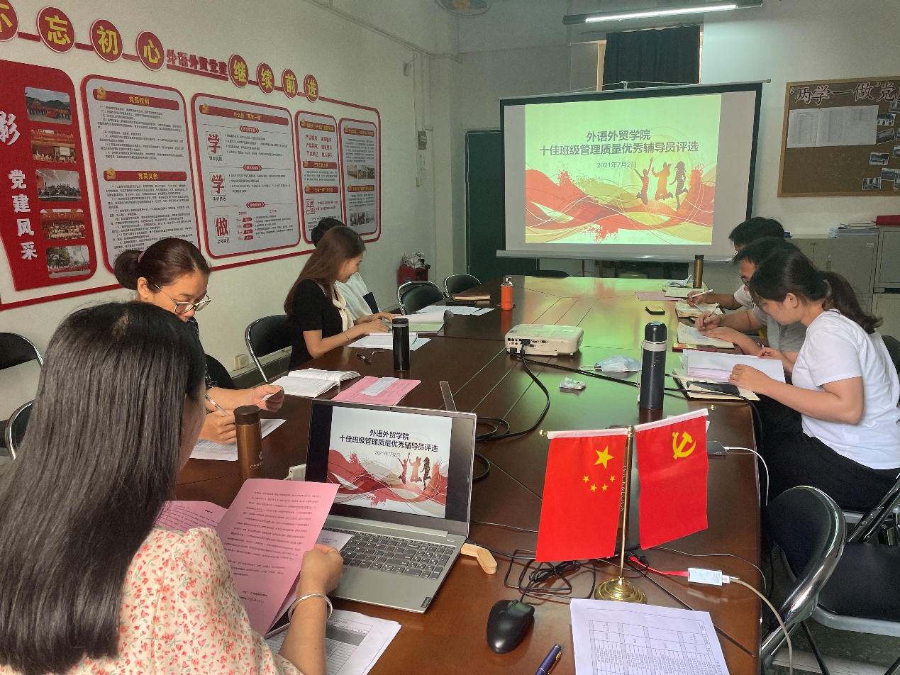 7月2日下午,为进一步提升班级管理工作,科学评价辅导员工作成效,促进良好班风的形成,促使学生管理科学化、规范化、制度化,根据《广州城建职业学院班级管理质量评价办法》文件精神和学生处关于开展“十佳班级管理质量优秀辅导员”评选活动的通知,外语外贸学院学生工作办公室在人文艺术楼317会议开展了学院“十佳班级管理质量优秀辅导员”评选活动,活动由学工副院长刘榕敏主持,全体辅导员出席参加。