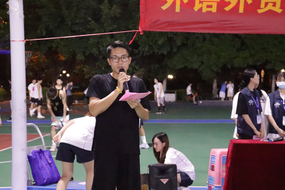 6月30日晚,外语外贸学院第七届“外院杯”篮球赛决赛暨闭幕式在三区篮球场进行,外语外贸学院团委书记孙锦俊、学工办辅导员崔伟壮、王倩林、罗浩、龚蝶以及各参赛代表队出席了比赛。