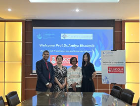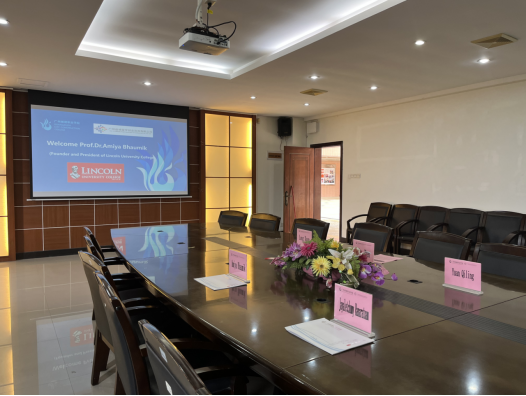 马来西亚林肯大学学院创建于2002年,是具有大专、本科、硕士、博士层次教育的马来西亚全日制高等院校,被马来西亚教育部评为“五星级大学”。会上双方就国贸与跨电、艺术与设计等专业的国际合作开展了深入的探讨,双方就未来国际化合作充满信心。