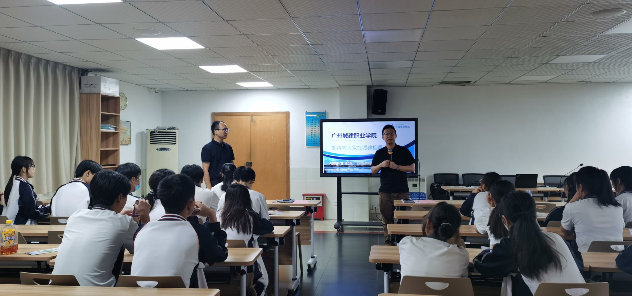 研讨会上,廖文硕介绍了珠海市第一中等职业学校基本情况,希望双方加强交流、扩大合作,进一步拓宽中高职人才发展通道,共同培养素质过硬、技能突出的复合型人才。赵团结谈及两校要不断优化“3+2”中高职办学模式,加强课程整合、衔接,实现“3+2”中高职联合办学的可持续发展、高质量发展,真正实现中高职教育一体化。双方就跨境电子商务专业的“3+2”项目在人才培养方案、课程体系、课程标准、实践教学、考核评价等方面进行了深入探讨。随后,一行人也看望我院与该校对接的211跨境电子商务班42名学生,并向学生进一步地介绍了我院基本情况同时也针对学生疑惑进行了解答,期待我院跨境电子商务专业迎来珠海市第一中等职业学校输送的第一批转段学生。