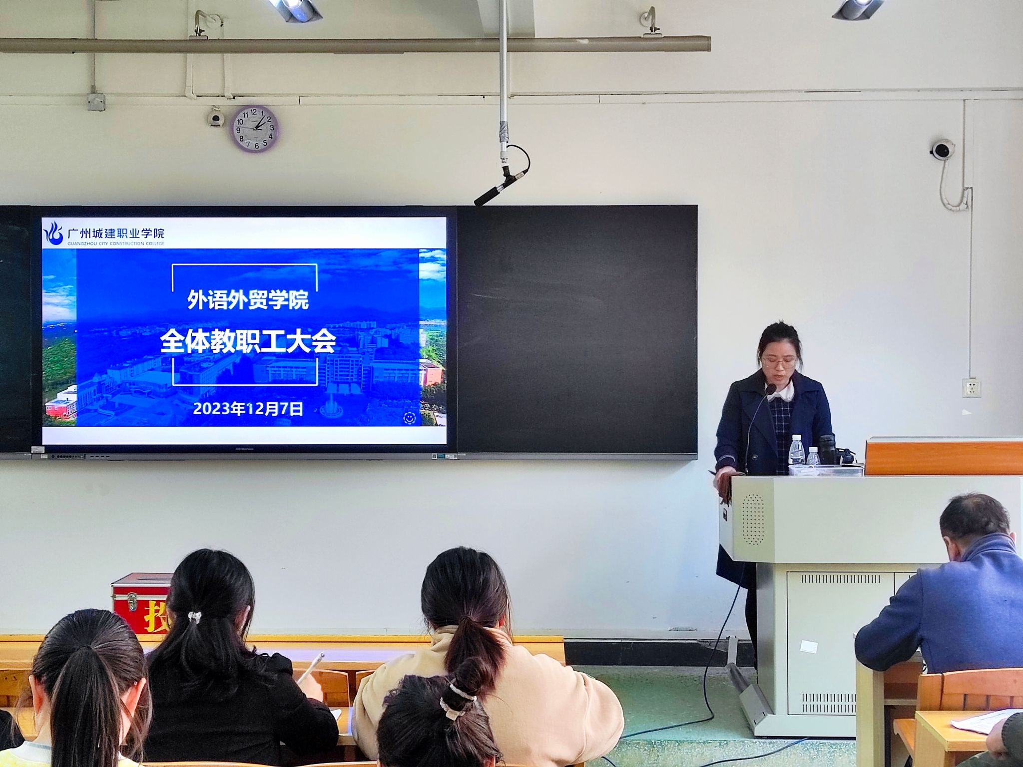 依据《关于选举广州城建职业学院第六届教职工代表大会暨第六届工会会员代表大会代表的通知》(以下简称“双代会”)文件要求,外语外贸学院工会小组于12月7日下午在人文艺术楼318召开了“双代会”代表选举会议,全体教职工参加了会议,会议由学院工会小组组长成惠慈主持。