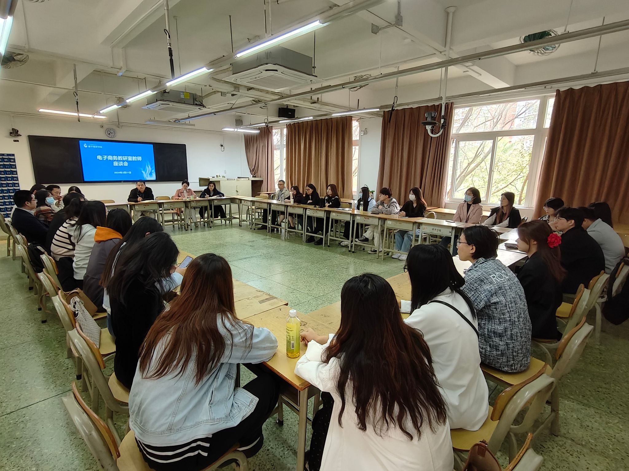 3月21日下午,数字商贸学院在人文艺术楼303教室召开电子商务教研室教师座谈会。会议由学院党委书记、院长赵团结主持,学院领导班子及电子商务教研室全体教师参加了座谈会。