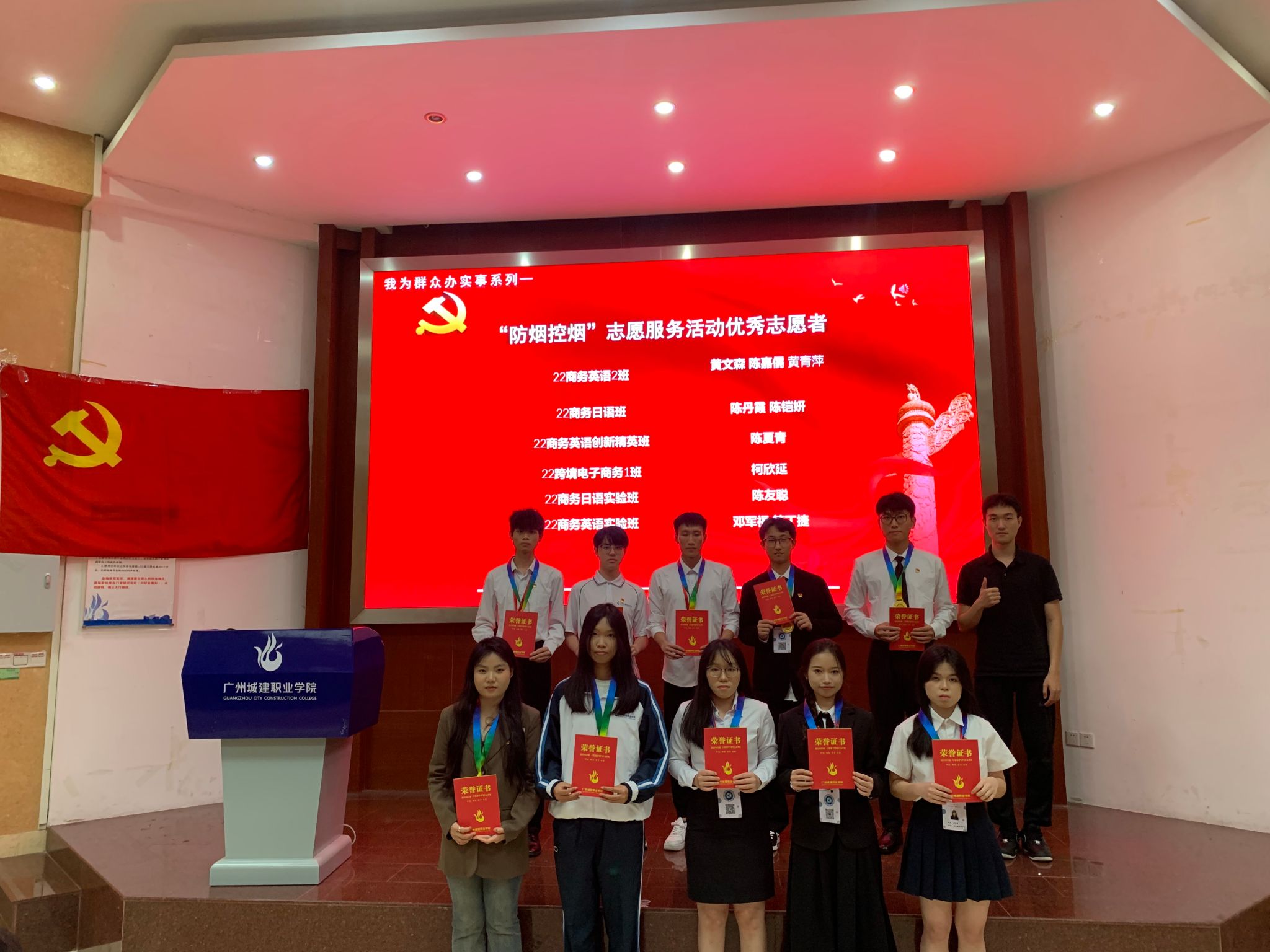 2023-2024学年,数字商贸学院学生党建工作办公室开展了防烟控烟、红色梦工坊、手工作品征集、红色研学等系列红色活动,从中也涌现了许多积极参与党建活动的先进分子,此次共表彰22名优秀学生干部,10名优秀志愿者、6名优秀学员以及15名手工作品比赛获奖者。