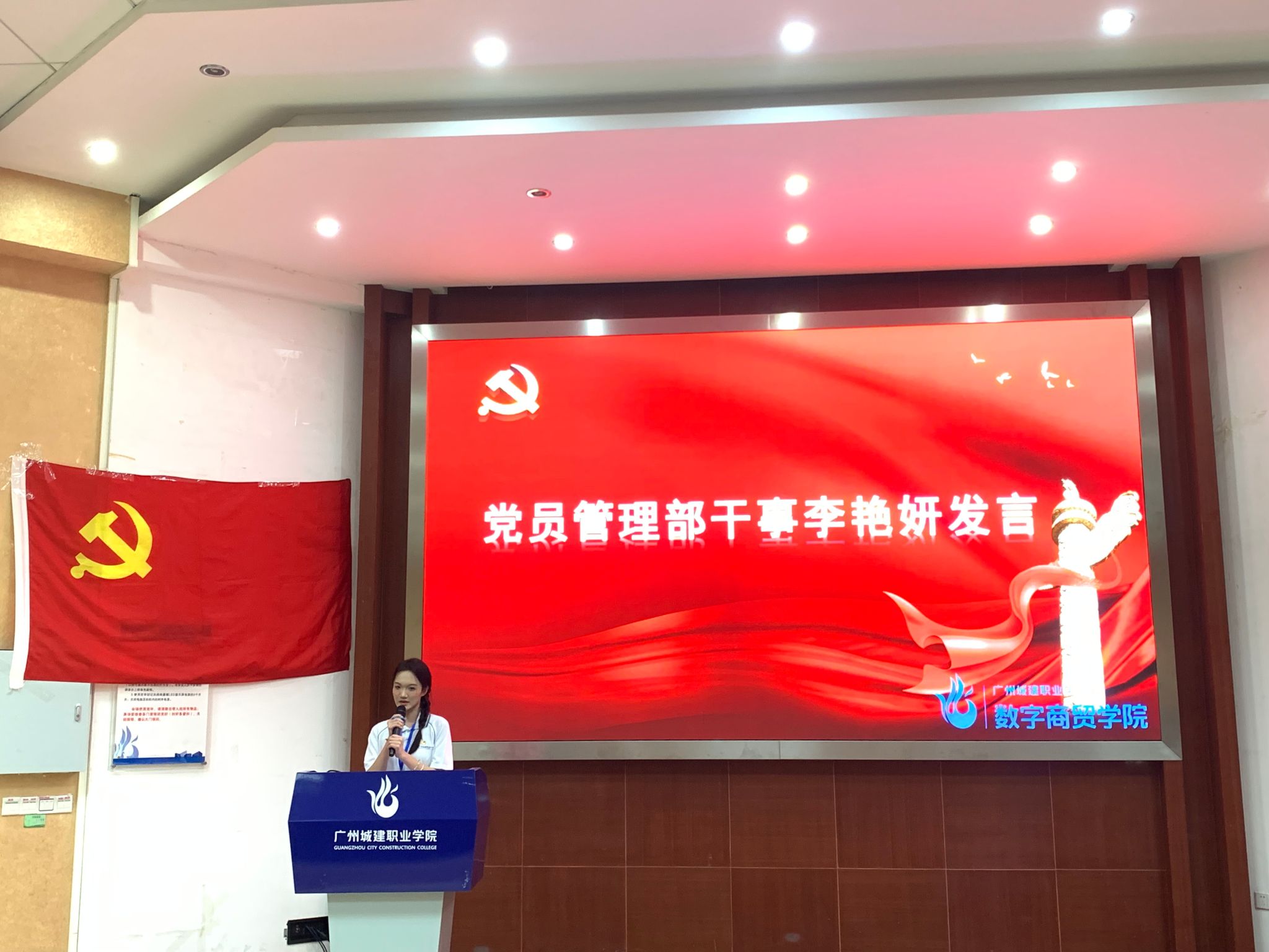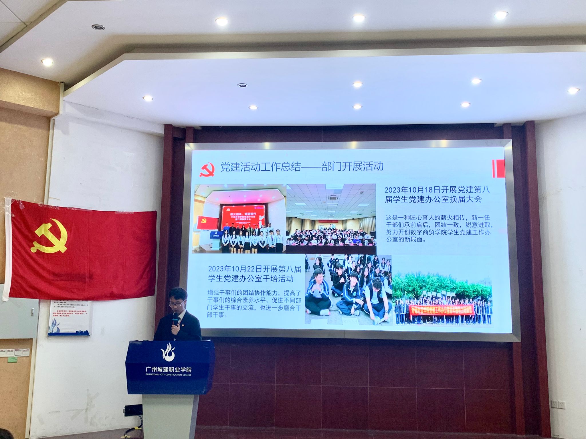 大会上,学生党建工作办公室主任管丁捷和各部门部长依次总结了过去一学年的工作开展情况,并制定了下一阶段的工作计划和工作目标,2023会展班李艳妍同学作为优秀干事代表发言。