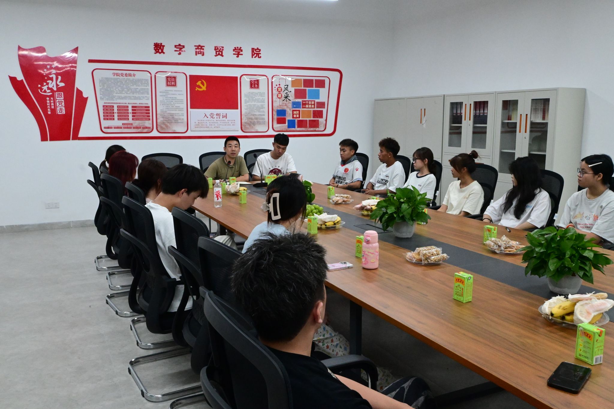 为进一步深入推进学校“惠生民心”工程,筑牢中华民族共同体意识,营造民族一家亲的优良育人环境,9月18日,数字商贸学院党委召开清远校区2024级少数民族学生座谈会,学院党委副书记、副院长邹超和来自藏族、蒙古族、畲族、瑶族、布依族、壮族、土家族、黎族等民族的21名2024级新生参加座谈会。会议由学院团委书记邹鹏主持。