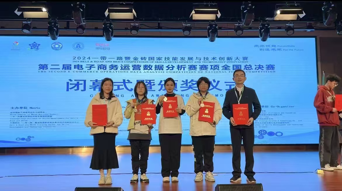 10月25日,由金砖国家工商理事会中方理事会、一带一路暨金砖国家技能发展国际联盟、中国科协一带一路暨金砖国家技能发展与技术创新培训中心主办的一带一路暨金砖国家技能发展与技术创新大赛之第二届电子商务运营数据分析赛赛项全国总决赛在山东省临沂市高级财经学校顺利举行。赛事吸引了来自全国各地本科、高职和中职院校参加。数字商贸学院2024级电子商务专业罗柳靖、覃诗盈、陈心怡三位同学经过紧张激烈的角逐,荣获国赛二等奖。