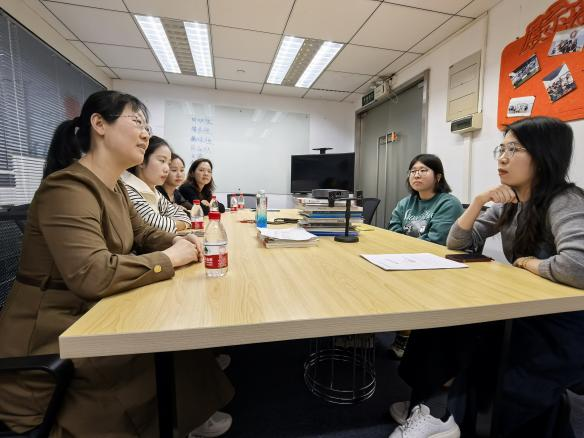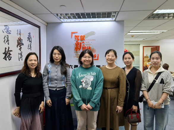 2025年3月11日,数字商贸学院大学英语教研室主任邹菊花率商务英语专业实习指导团队走访广州六得传媒有限公司,了解实习生实践情况,并就校企合作展开深度交流,黄瑞娴、赵兰兰、徐秋月等教师参与。