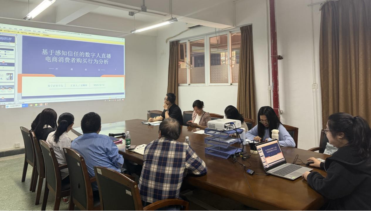 为深化科研创新体系建设,提升教师科研实践能力,规范科研课题全流程管理。3月13日下午,我院顺利召开2025年度校级科研课题开题报告会。本次开题邀请了数字商贸学院党委书记、院长赵团结、李雄教授担任专家评委,与九位课题负责人共同研讨,通过“开题论证+学术对话”的创新形式,全面激活学院科研创新动能。