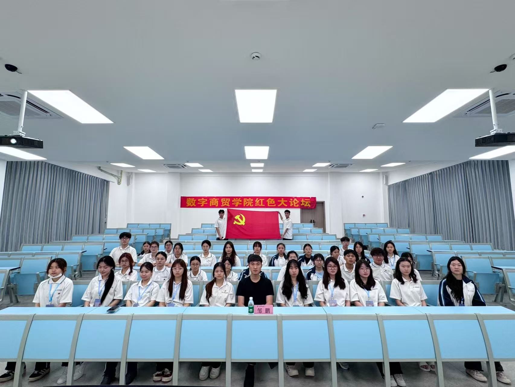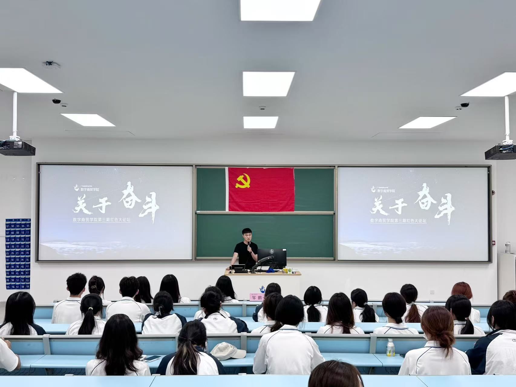 为引导青年学子树立正确奋斗观,5月19日,数字商贸学院在清远校区F2-202开展第三期红色大讲坛。本次活动以“奋斗”为主题,学院团委书记兼学生第一党支部书记邹鹏担任主讲人,学院2024级入党积极分子出席本次活动。