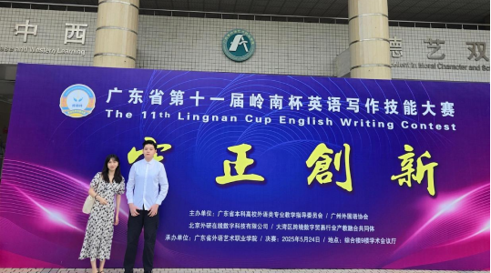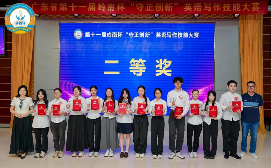 2025年5月24日,广东省第十一届岭南杯“守正创新”英语写作技能大赛决赛在广东省外语艺术职业学院举行。从初赛和复赛中胜出的、代表广东全省各参赛院校的65名决赛选手,以及指导老师、专家评委和志愿者们齐聚校园会议厅,出席大赛决赛。我院2023级商务英语1班的赖俊嘉同学成功晋级决赛,并同时斩获“金笔奖”及专业英语专科组二等奖。