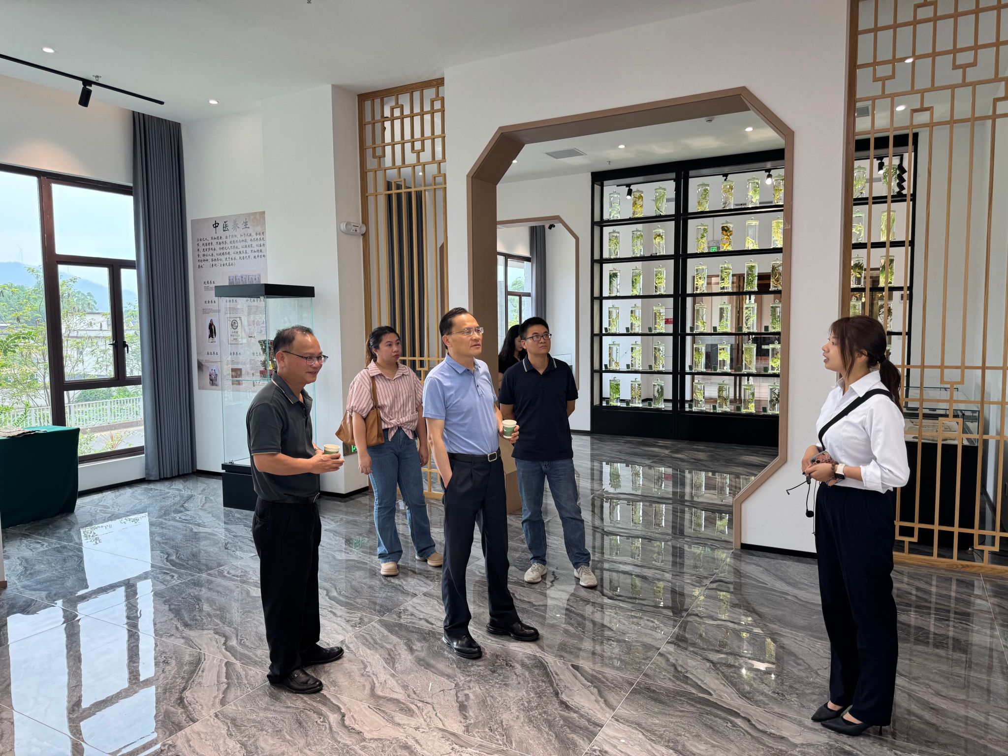 随后,团队参观中医药文化馆。馆内陈列百余种道地药材标本及药学说明,冯倩欣指出:"这种‘文旅+研学’的展陈方式,为我院旅游管理专业开发沉浸式康养旅游项目提供了鲜活案例。"