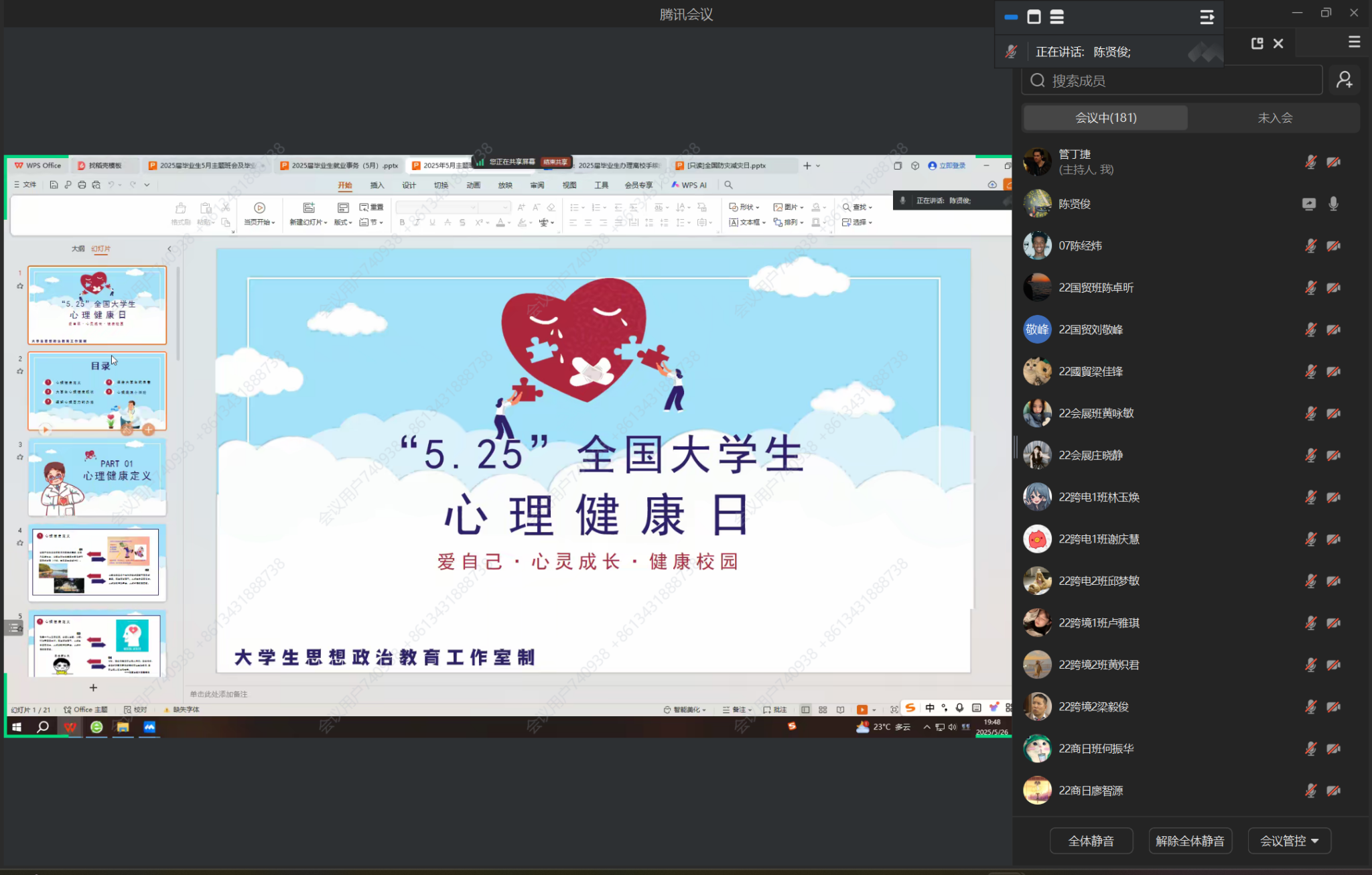 为提高思想政治育人水平,充分发挥辅导员在学生工作中的思想引领作用,关注学生的心理健康,提高学生防灾减灾的安全意识,做好学生节假日前后的安全教育,同时做好毕业生文明离校的前期工作,根据学校的相关通知和文件要求,数字商贸学院各带班辅导员在5月份相继组织召开了心理健康、全国防灾减灾安全日、 端午节假日安全提醒、2025届毕业班离校安排等主题教育班会。