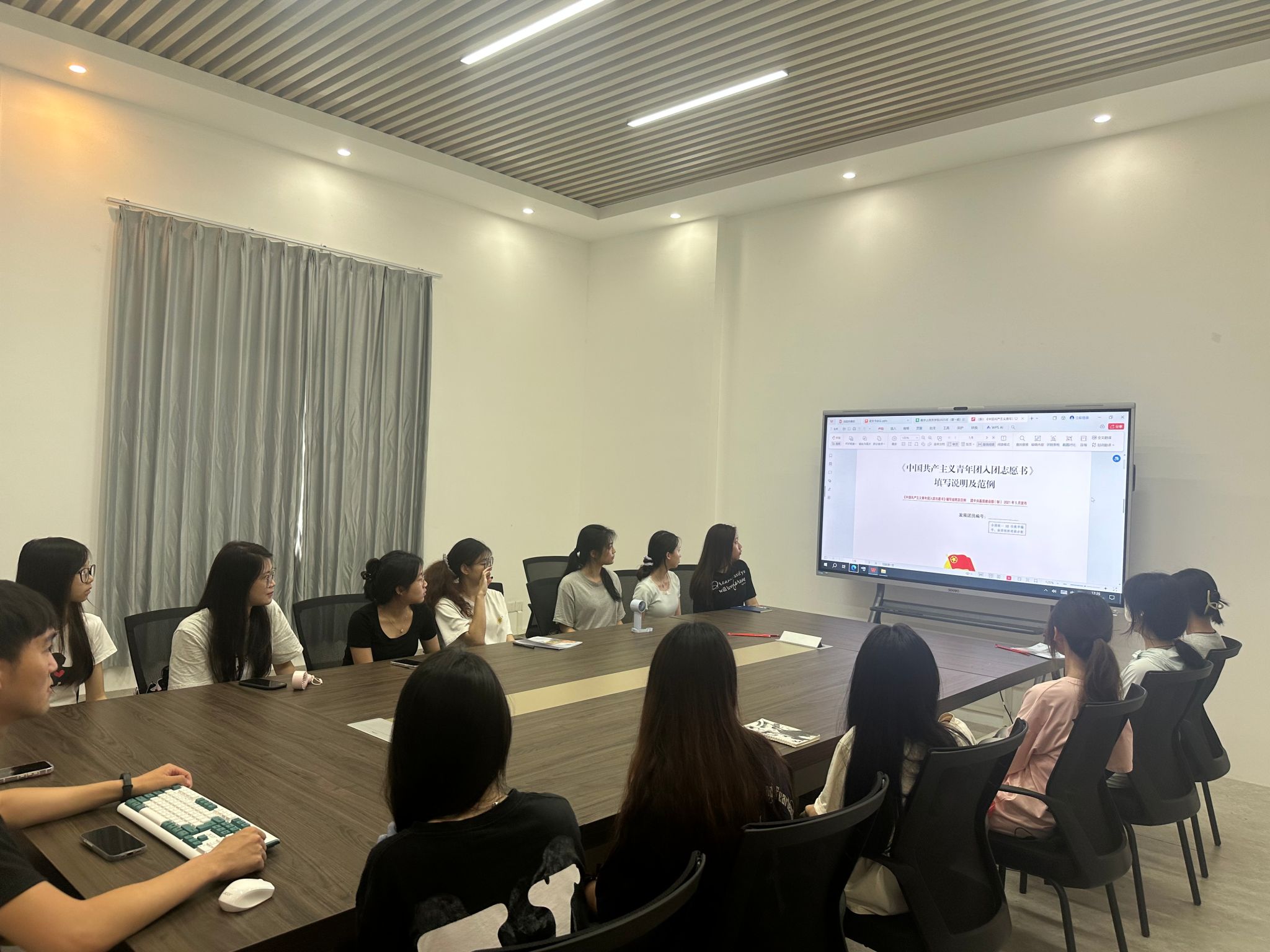 随后,会议进入《入团志愿书》填写培训环节。邹鹏从填写规范、注意事项、常见问题等方面进行了细致讲解,强调《入团志愿书》是团员档案的重要组成部分,填写时必须严肃认真、规范准确。通过现场演示与答疑,团支书们对填写要求有了更清晰的认识,为后续指导新团员规范填写《入团志愿书》奠定了坚实基础。