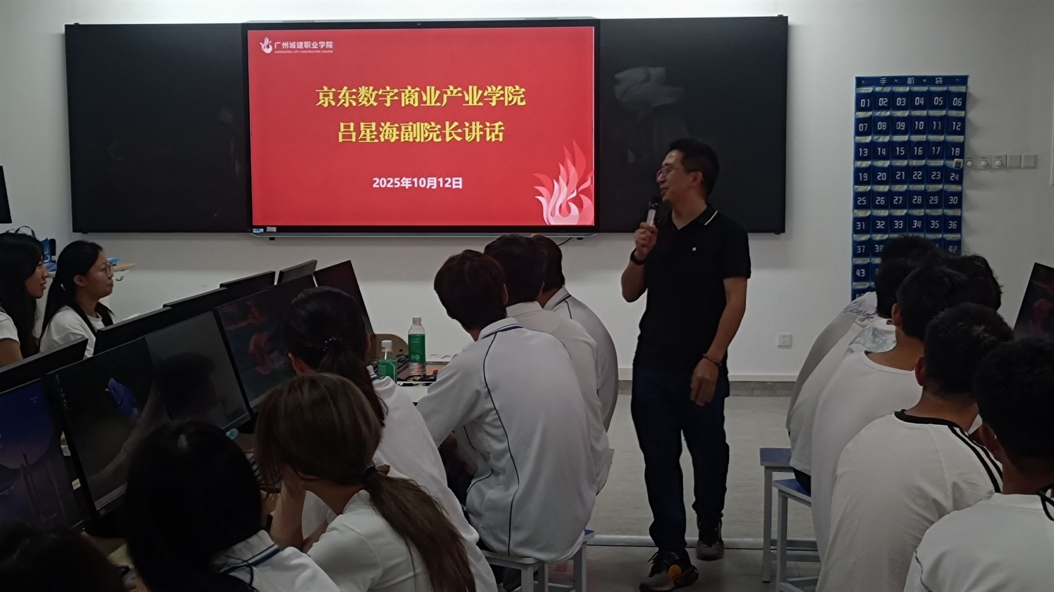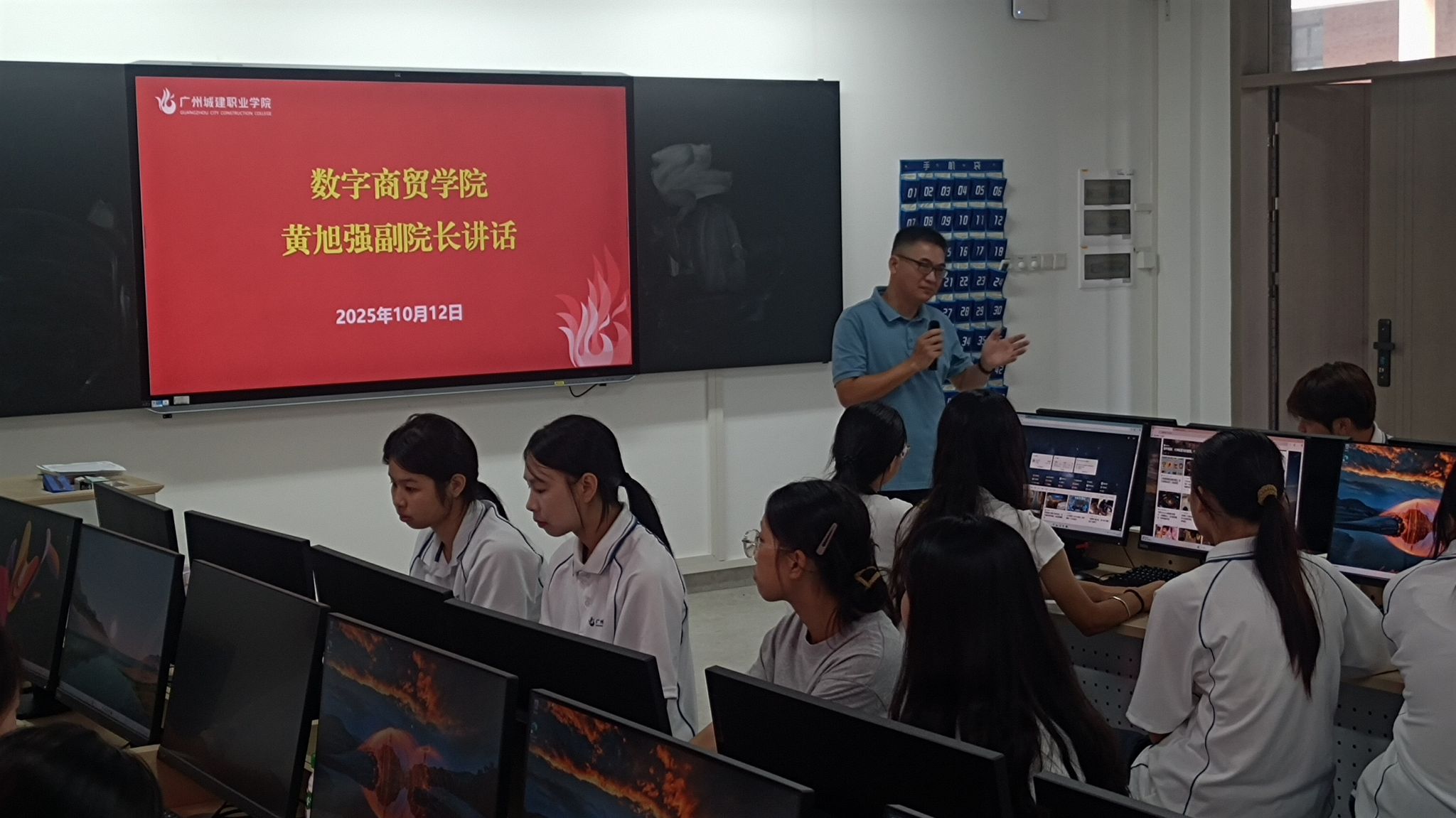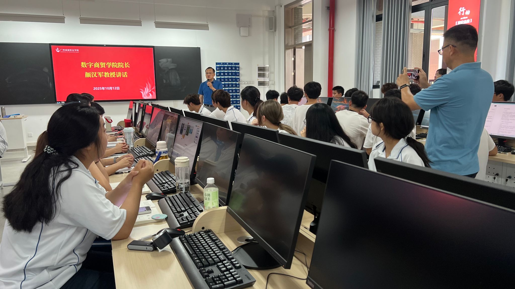 随后,黄旭强副院长从校方育人角度对项目进行了系统性阐述。他详细解读了“模拟公司”的组织架构、运营规则与综合考核标准,并重点介绍了项目如何通过“真实项目驱动”与“阶梯式培养”,帮助学生系统化构建电商全链路能力。他特别强调项目的最终目标,不止于技能的传授,更在于商业思维与职业素养的深度塑造。