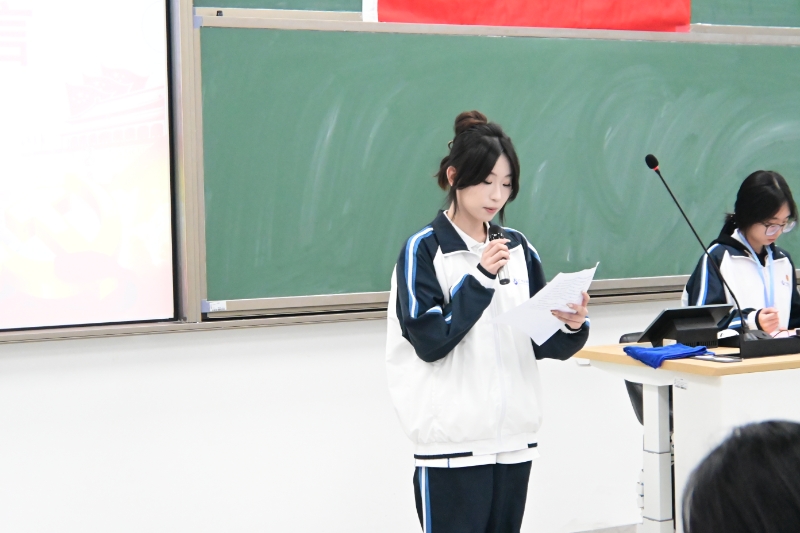 典礼在庄严雄壮的国歌声中正式拉开帷幕。本期党校班班长周爱儿代表全体学员做总结发言,她回顾了学习的难忘历程,从理论课堂的深耕细研到实践活动的锤炼提升,全面梳理了学员们的成长与收获,衷心感谢学院党委和老师的辛勤付出,并代表全体学员郑重承诺将所学付诸实践,切实发挥先锋模范作用,不辜负党组织的悉心培养。