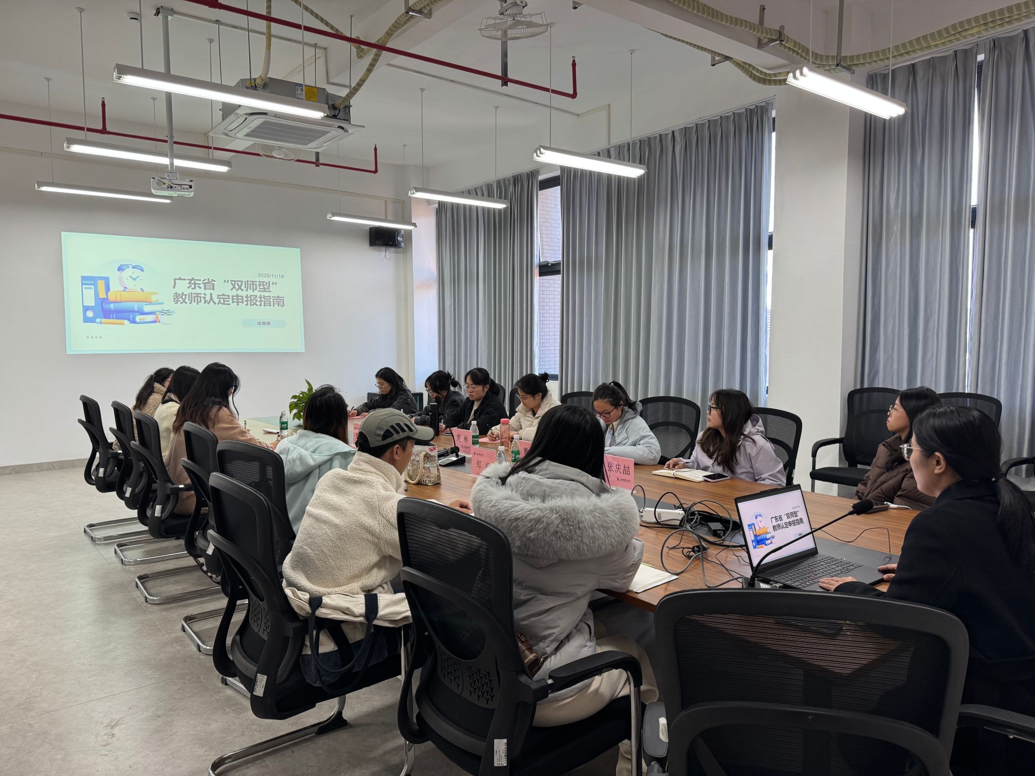 指导会上,成惠慈首先传达了学校人事处《关于做好2025年第二批职业教育“双师型”教师认定工作的通知》的核心要求,强调了“双师型”教师队伍建设对于学校高质量发展及教师个人职业生涯发展的重要意义。她鼓励与会教师把握机会,积极申报,以评促建,不断提升自身的实践教学能力和综合素养。