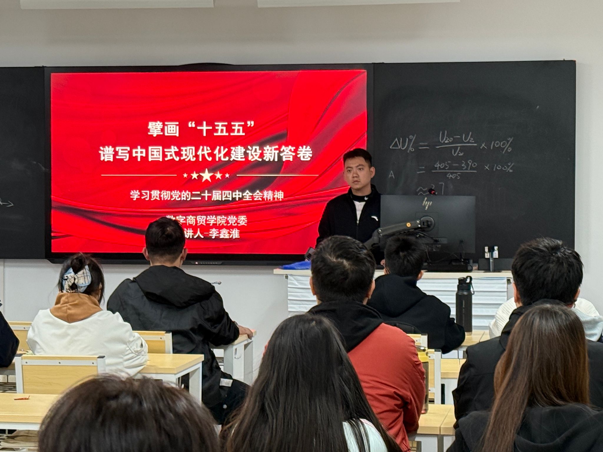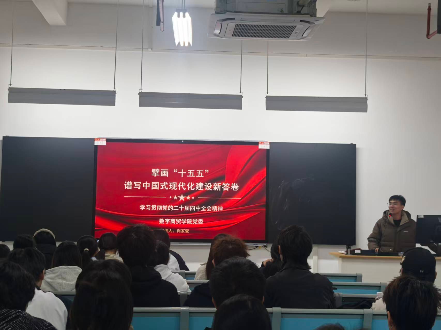 为深入学习贯彻党的二十届四中全会精神,充分发挥辅导员队伍的思想引领作用,根据学校和学院的相关部署安排,2025年11月,数字商贸学院学工办各辅导员先后在自己所带的班级中开展了党的二十届四中全会精神学习主题教育班会。