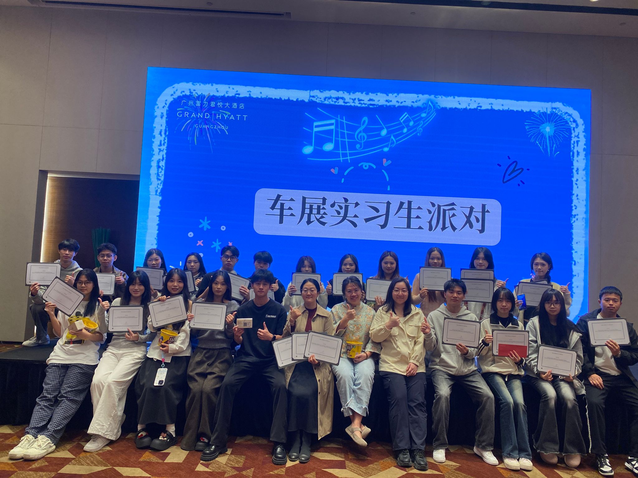 随后进入激动人心的表彰环节。酒店方与学院教师共同为优秀实习生颁发“优秀实习生奖”等荣誉,并现场颁发广州国际汽车展览会实习证书。
