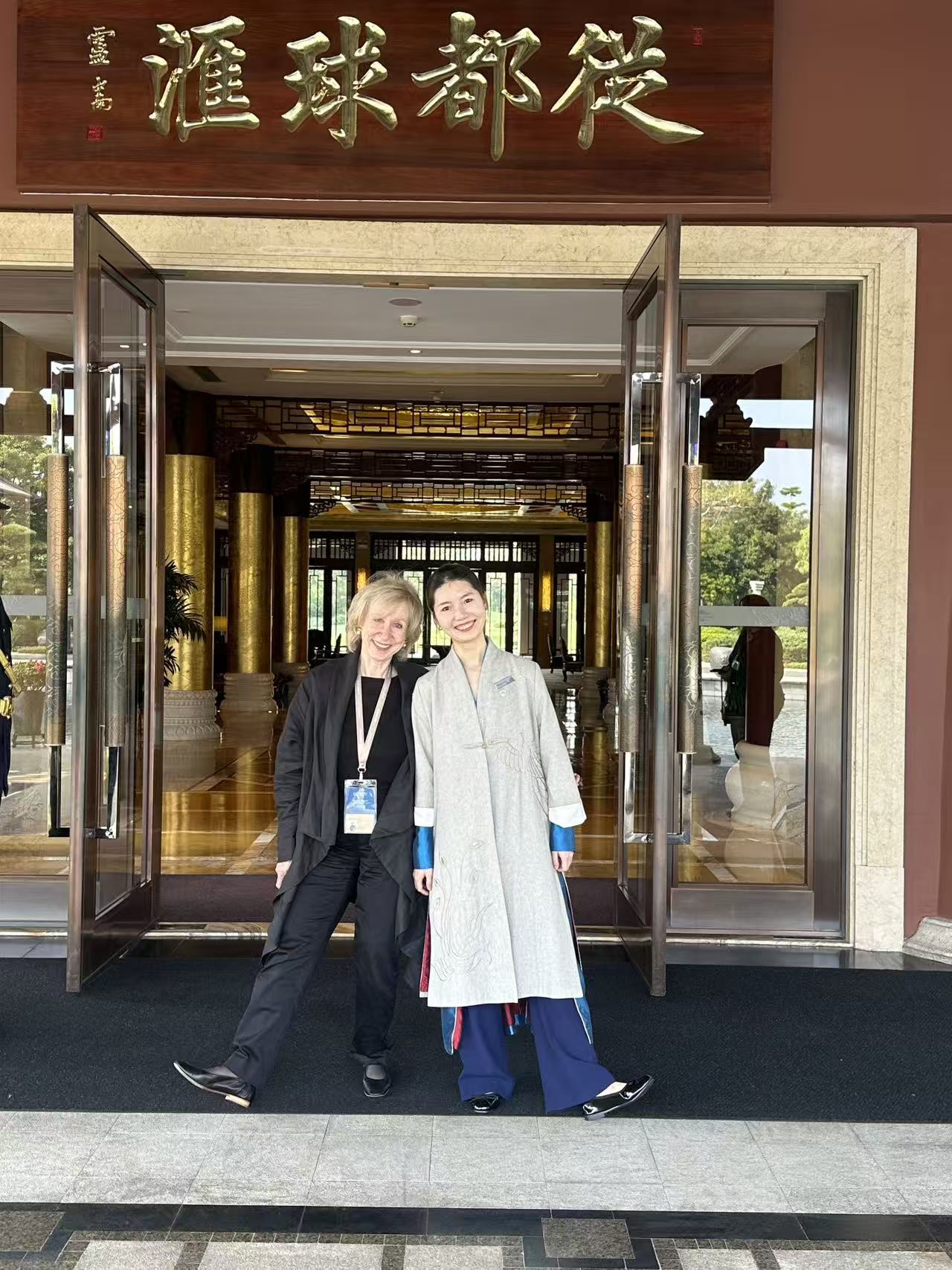 △23级商务英语专业学生许涵与加拿大前总理金·坎贝尔(左)合照