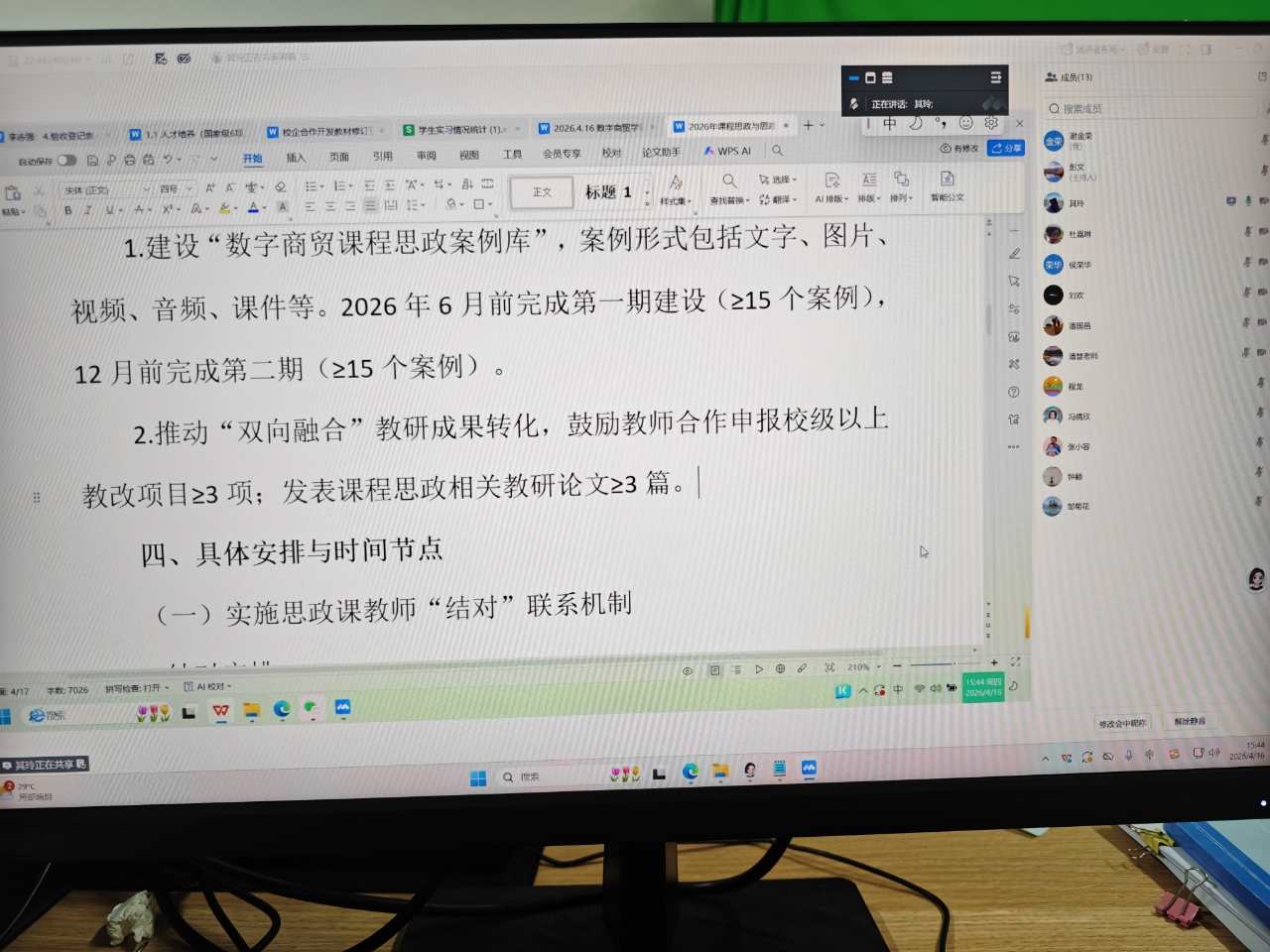 会议聚焦顶层设计,明确年度目标。会议围绕学校“双向融合”实施方案的总体要求,对标学院制定的《2026年课程思政与思政课程“双向融合”教研活动初步工作计划》,确立了2026年度“教师参与度≥90%、课程融合度≥80%、形成特色案例集≥2套”等量化目标,明确了以“理论共学、内容共研、方法共商、资源共建”四大任务为核心的工作路径。