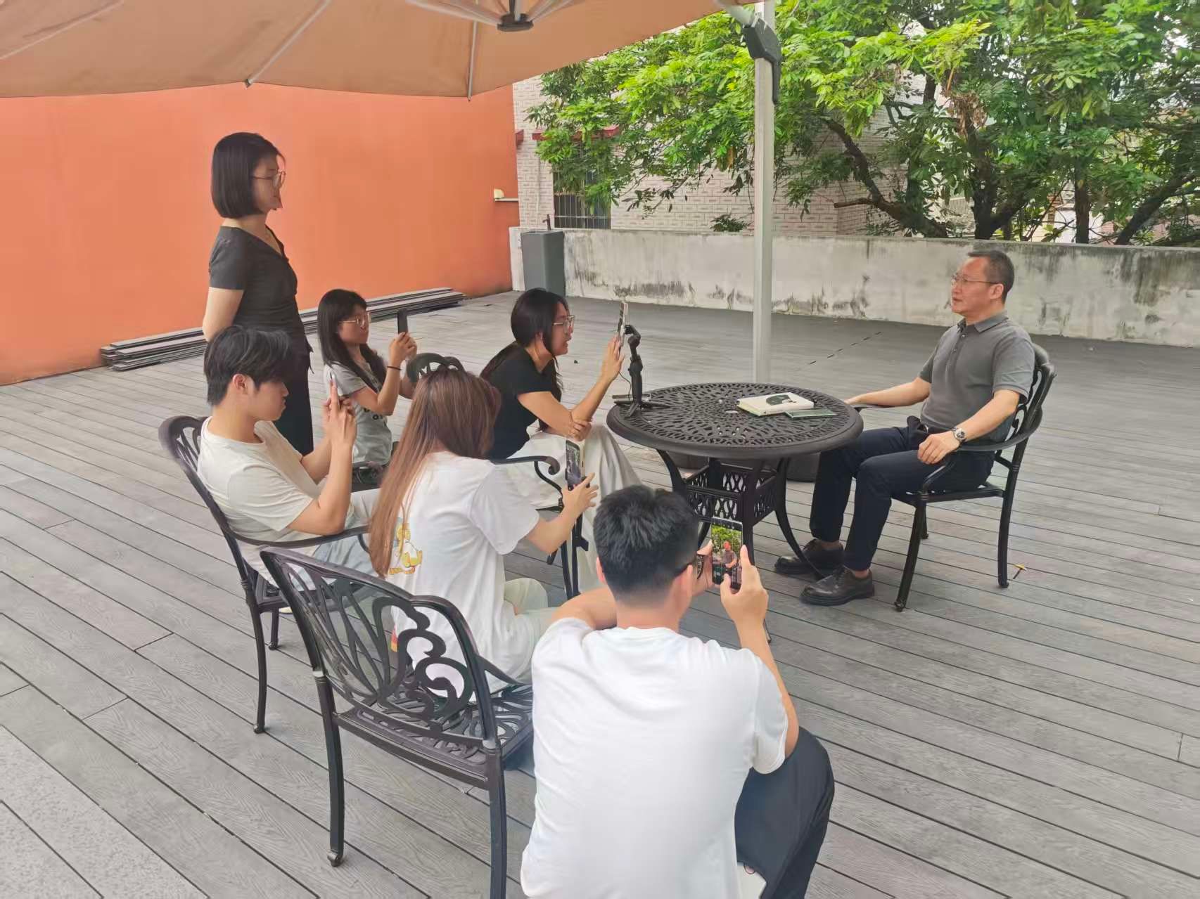 ▲师生多角度拍摄企业负责人,学习不同场景下的拍摄方法
