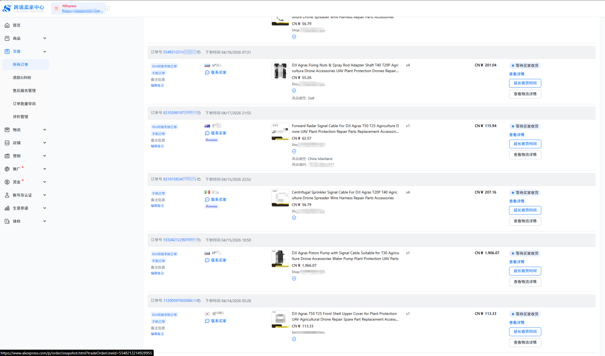 △24铂元订单班跨境平台首批订单截图