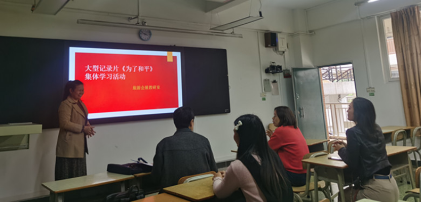 12月10日国贸与报关教研室、旅游会展教研室观看《为了和平》纪录片现场