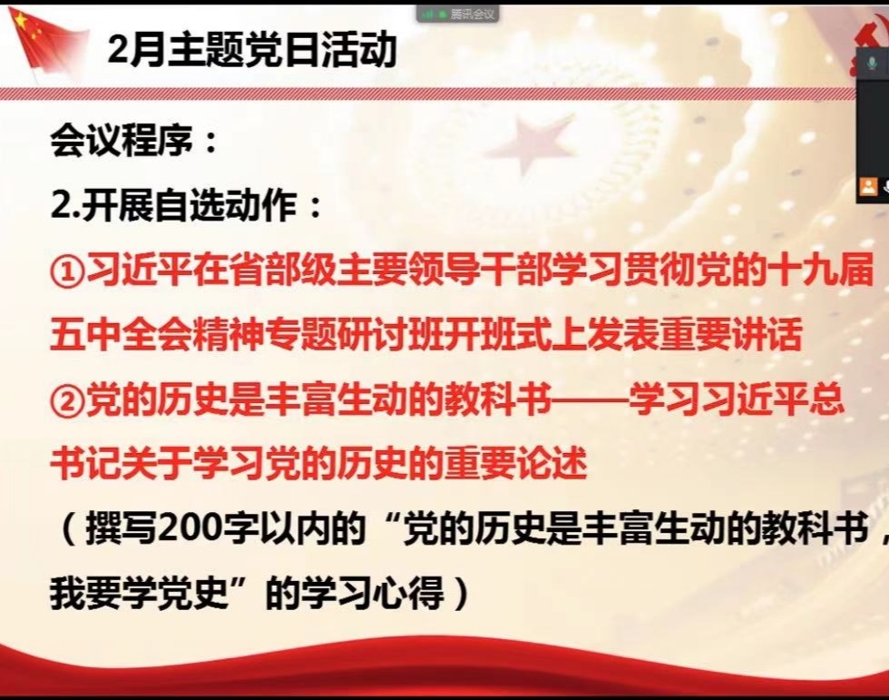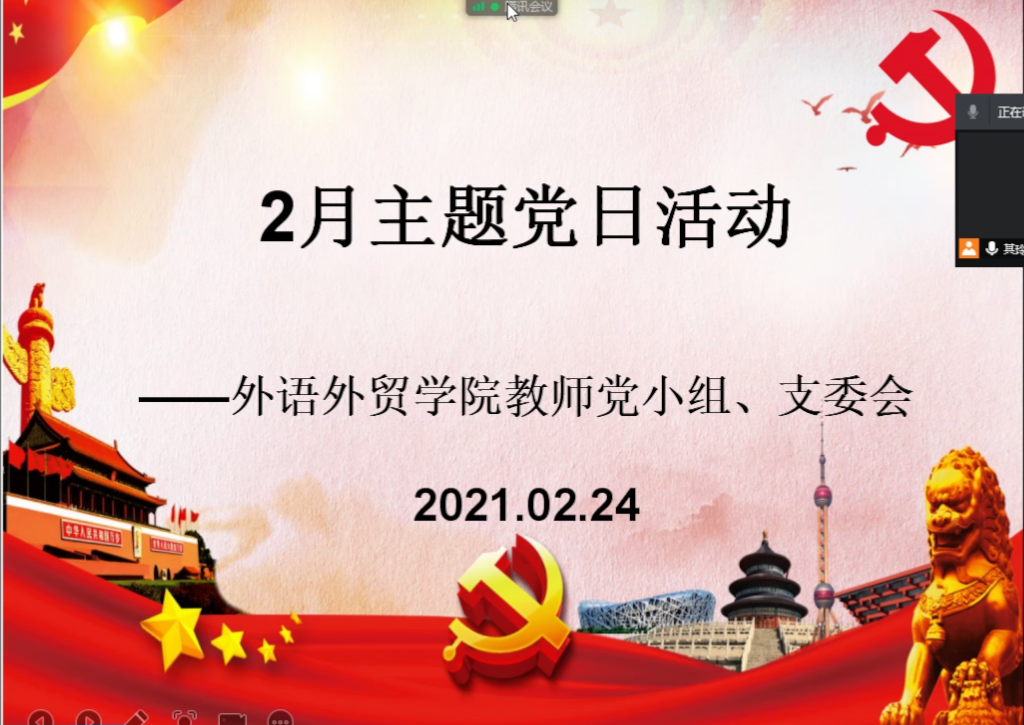 2月24日晚上7点,外语外贸学院教师党支部在线上开展了2021年2月主题党日活动。活动由党支部书记袁其玲同志主持,支委委员和各教研室党组织组长参加了会议。本次活动围绕“党的历史是丰富生动的教科书,我要学党史”为主题展开学习和讨论。