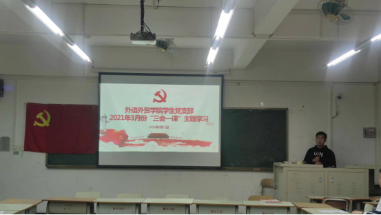 3月11日,外语外贸学院学生党支部于人文艺术楼502召开3月份“三会一课”专题学习。本次专题学习内容为习近平总书记在学党史动员大会上的讲话以及雷锋精神参会人员为支部全体党员同志,会议由支部书记陈贤俊主持。