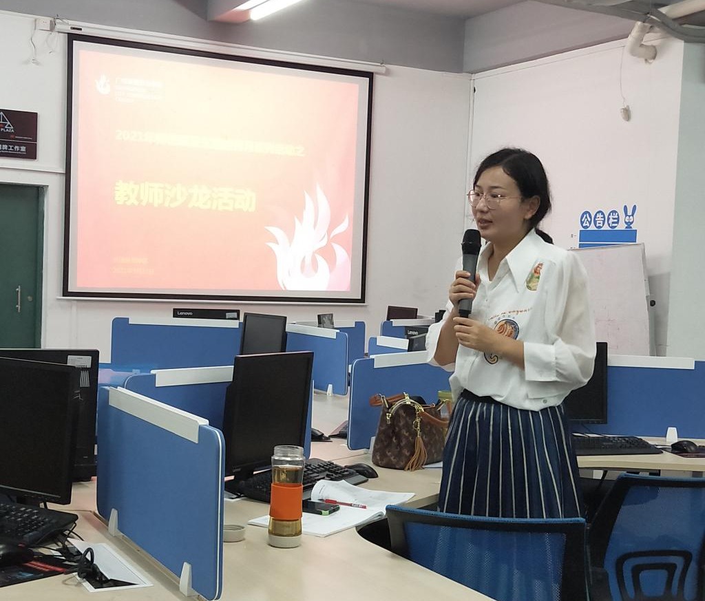 翁翠老师作为党员教师,与大家分享了她从教以来教学、工作经验上的积累,以及有效课堂课程思政的运用,并建议老师们在课堂上多给学生传播优秀文化、传递正能量。