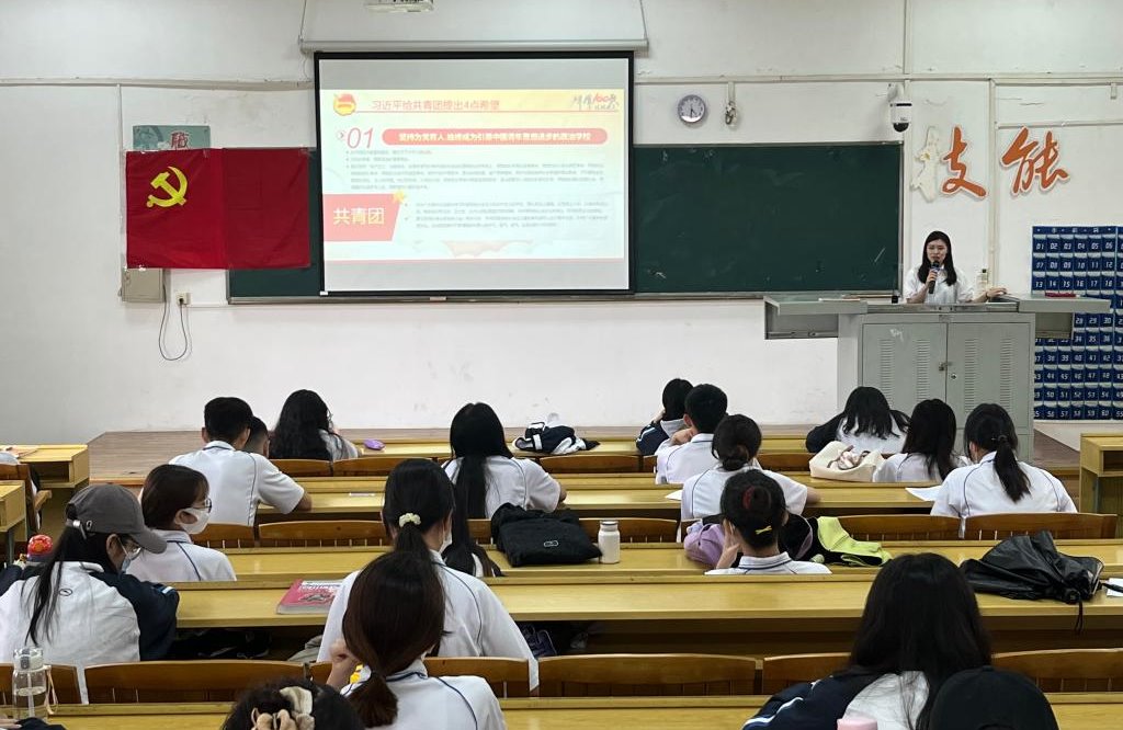 会议在庄严的《义勇军进行曲》中拉开序幕。本次会议以“越百年栉风沐雨,绽芳华乘风破浪”为主题。主要学习习近平在庆祝中国共产主义青年团成立100周年大会上的讲话。
