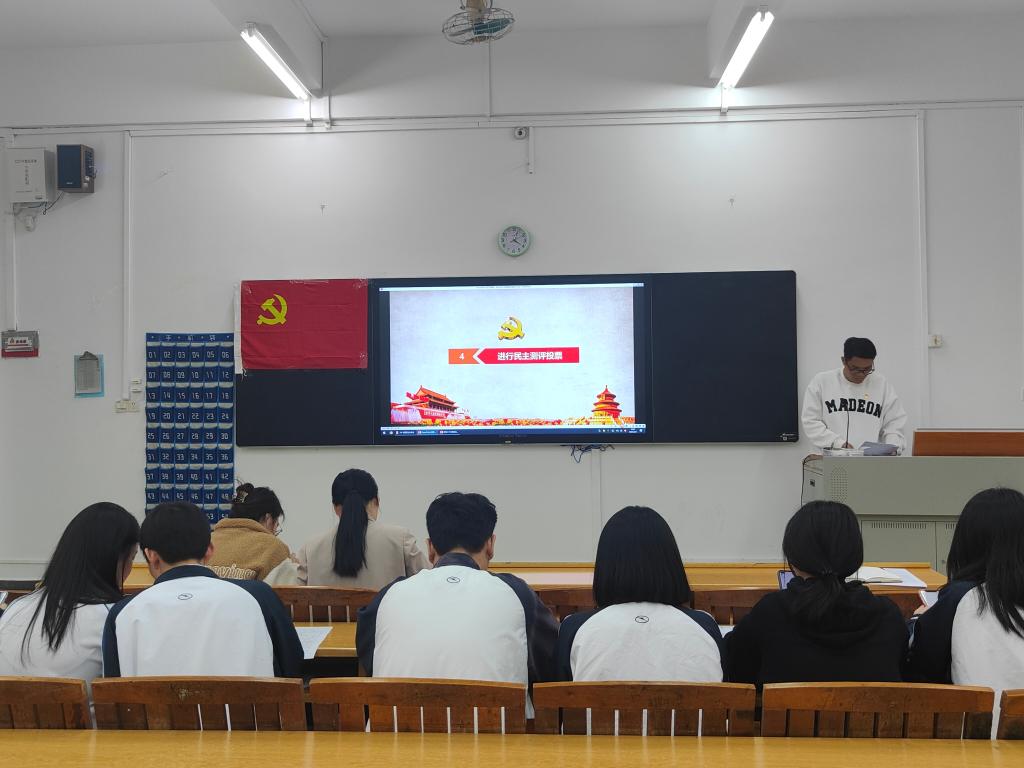 为深入学习宣传贯彻党的二十大精神,进一步统一思想、统一意志、统一行为,积极引导新时代党员勇于自我革命、自我净化、自我完善、自我革新、自我提高,更好地朝着实现中华民族伟大复兴的宏伟目标勇毅前行。3月9日下午,外语外贸学院学生第二党支部在人文艺术楼1120教室召开专题组织生活会与民主评议党员大会。本次大会通过线上+线下的形式相结合进行,会议由支部书记孙锦俊同志主持。