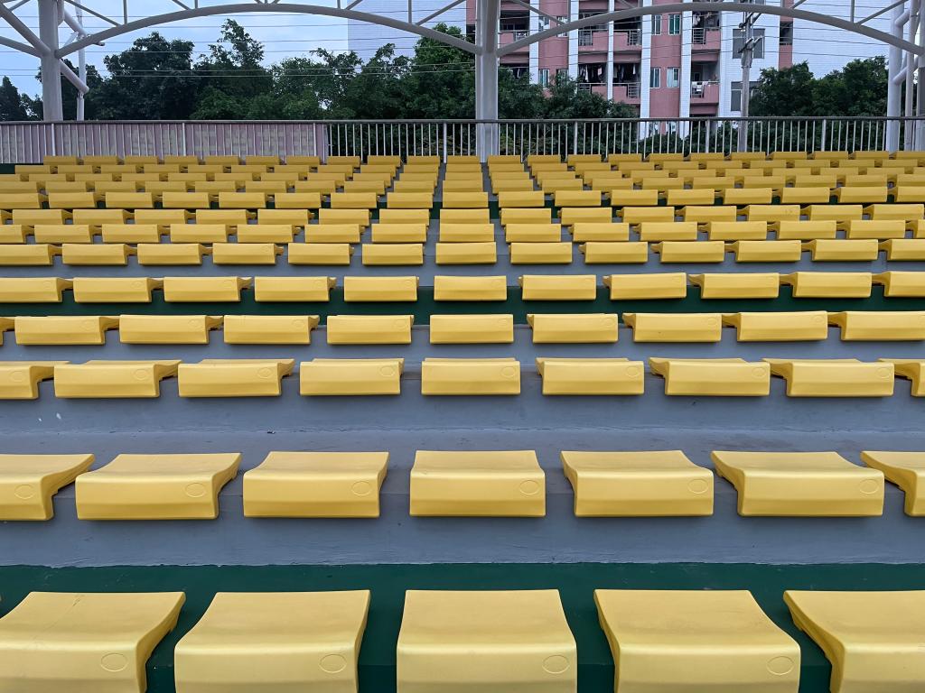 打扫完成后,观众席上的凳子,在晚霞的余光中,不论近看还是远看,都异常干净!