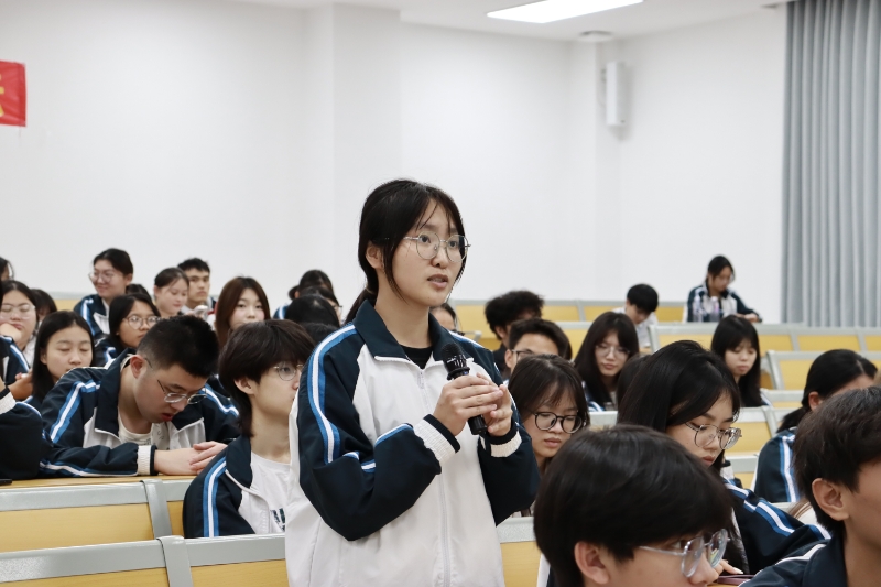 在提问分享环节,同学们热情高涨、踊跃发言。大家纷纷分享自己家乡的红色故事、熟知的担当典范事迹,一个个感人至深的故事传递着不朽的红色力量,展现了青年学子对红色文化的深刻感悟。为深化大家对红色知识与担当内涵的理解,论坛还设置了问答填空和快问快答两大互动环节。“中国共产党的性质是什么?”“我们党执政兴国的第一要务是什么?”.......一道道紧扣红色主题与国情知识的题目,引发了同学们的积极抢答。大家举手迅速、应答准确,在紧张有趣的氛围中巩固了红色知识,强化了责任意识,现场气氛热闹非凡。