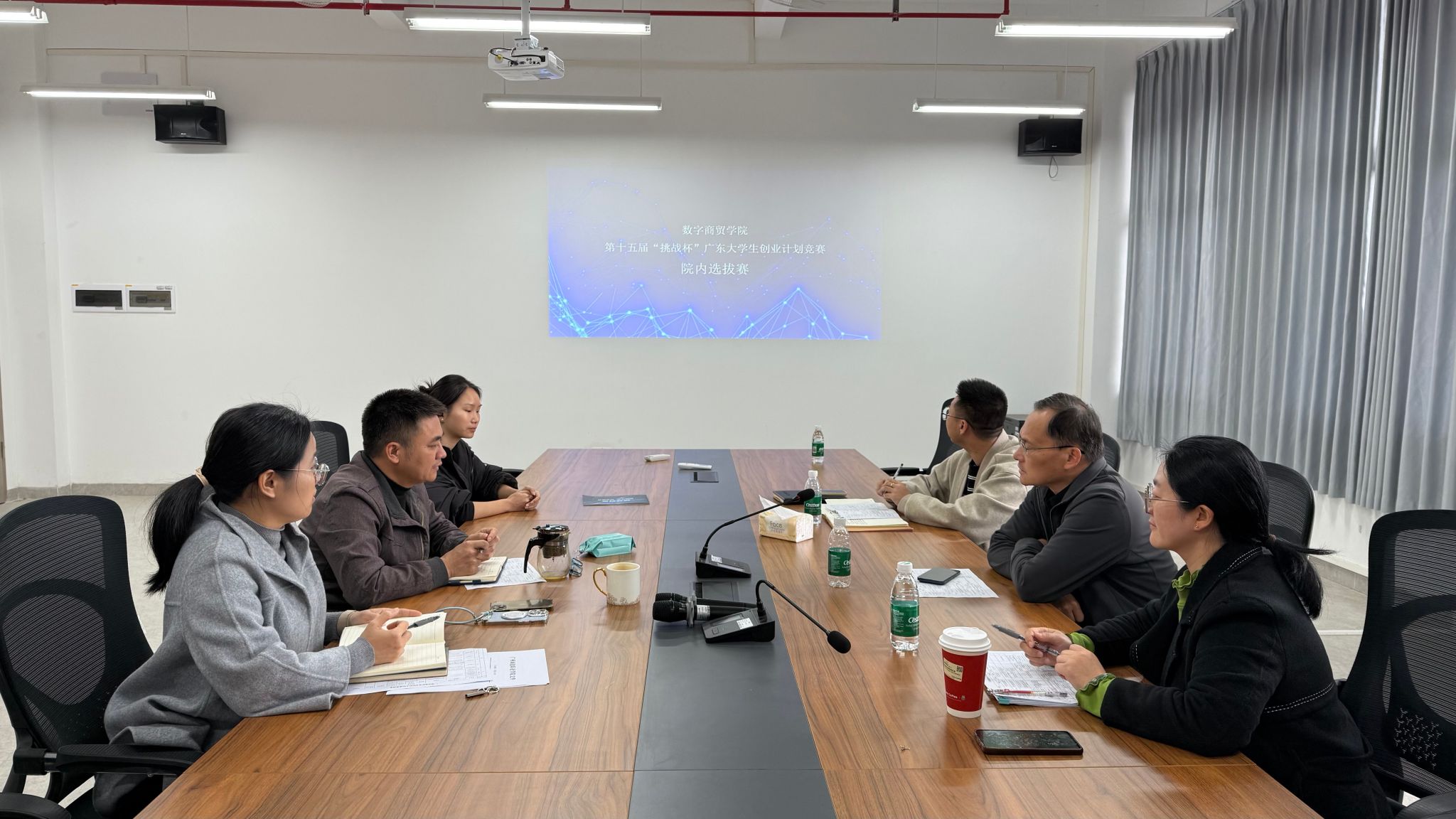 为深入落实立德树人根本任务,激发青年学生创新精神与创业意识,搭建科技创新与学术交流优质平台,12月10日,数字商贸学院在清远校区F9-705会议室成功举办第十五届“挑战杯”广东大学生创业计划竞赛院内选拔赛。本次比赛由学院行政领导班子组成评审团,秉持公平公正原则开展评审工作。学院党委书记、院长颜汉军,学院党委副书记、副院长邹超,学院副院长袁其玲,副院长黄旭强,办公室主任成惠慈出席本次比赛并担任评委,学院各年级学子组队参赛。